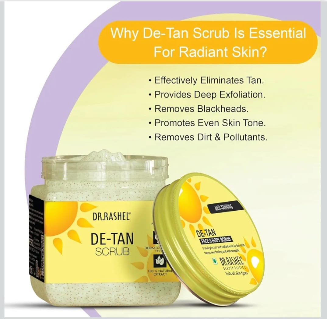 DR.RASHEL De-Tan Scrub For Face & Body (380 Ml) | Revitalizing Tan Removal || Cleanser,Dead Skin|| Blackhead Remover For Deep Exfoliation Scrub